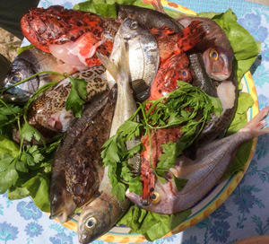 Pantelleria is well-known for their capers, and couscous is a favorite brought originally from north Africa by sailors. At one time this area was abundant with the now near-extinct bluefin tuna. Processors used a brutal fishing method called the mattanza (tuna fishing) which was banned many years ago. The history of the former abundance stilll shows up in dishes such as polpettine di tonno and ficazza, a type of salami made with tuna. Today visitors interested in sustainable practices will choose less rare species such as skipjack, yellowfin, albacore, or bonito for their meal. |